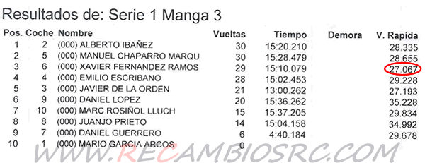 Vuelta Rápida de la carrera para : Javier de la Orden: 26.536 segundos.